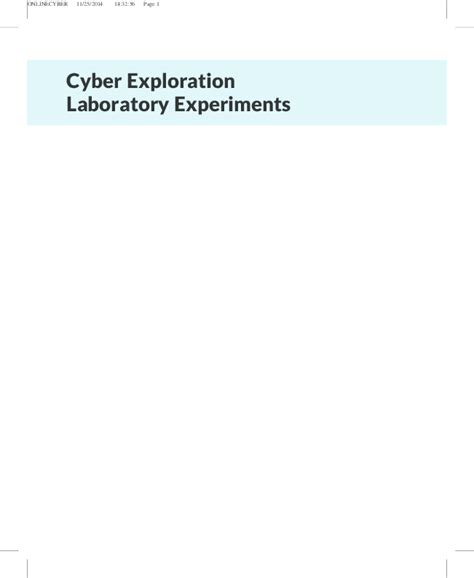 Best CYBER EXPLORATION LABORATORY EXPERIMENTS SOLUTIONS MANUAL Ebook Read Online EBook Sites No Sign Up - As we know, Read Online EBook is a great way to spend leisure time. Almost every month, there are new Ebook being released and there are numerous brand new Ebook as well.